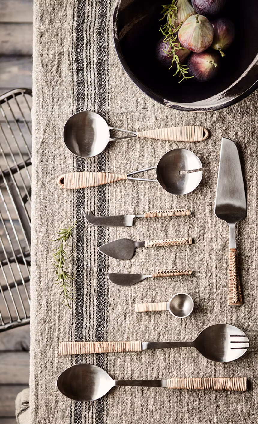 Odin från Affari of Sweden, set med 3 st ostknivar i rostfritt stål med handtag i flätad bambu.