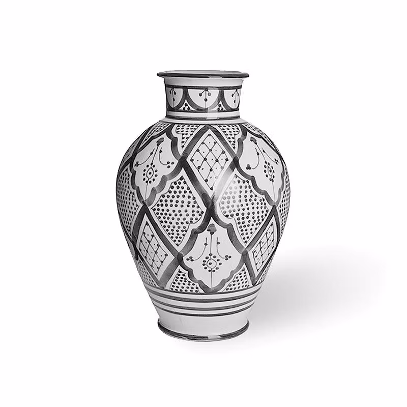 Unika urnor från Moroccan home som är handgjorda och handmålade med ett traditionellt marockanskt mönster. Använd den som en vacker inredningsdetalj att ha hemma eller att vackra blommor. Storlek 35 cm