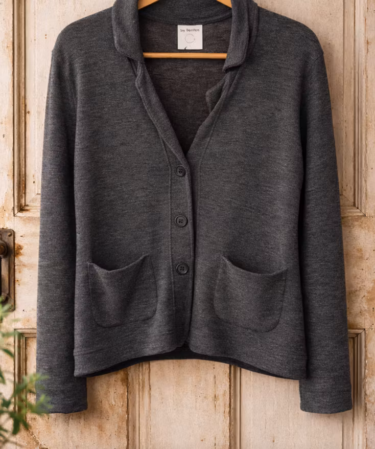 En mjuk och följsam kofta i fin merinoull som kombinerar elegans med vardagskomfort. Den avslappnade silhuetten, de diskreta knapparna och de generösa fickorna gör den lika användbar över en klänning som till jeans.